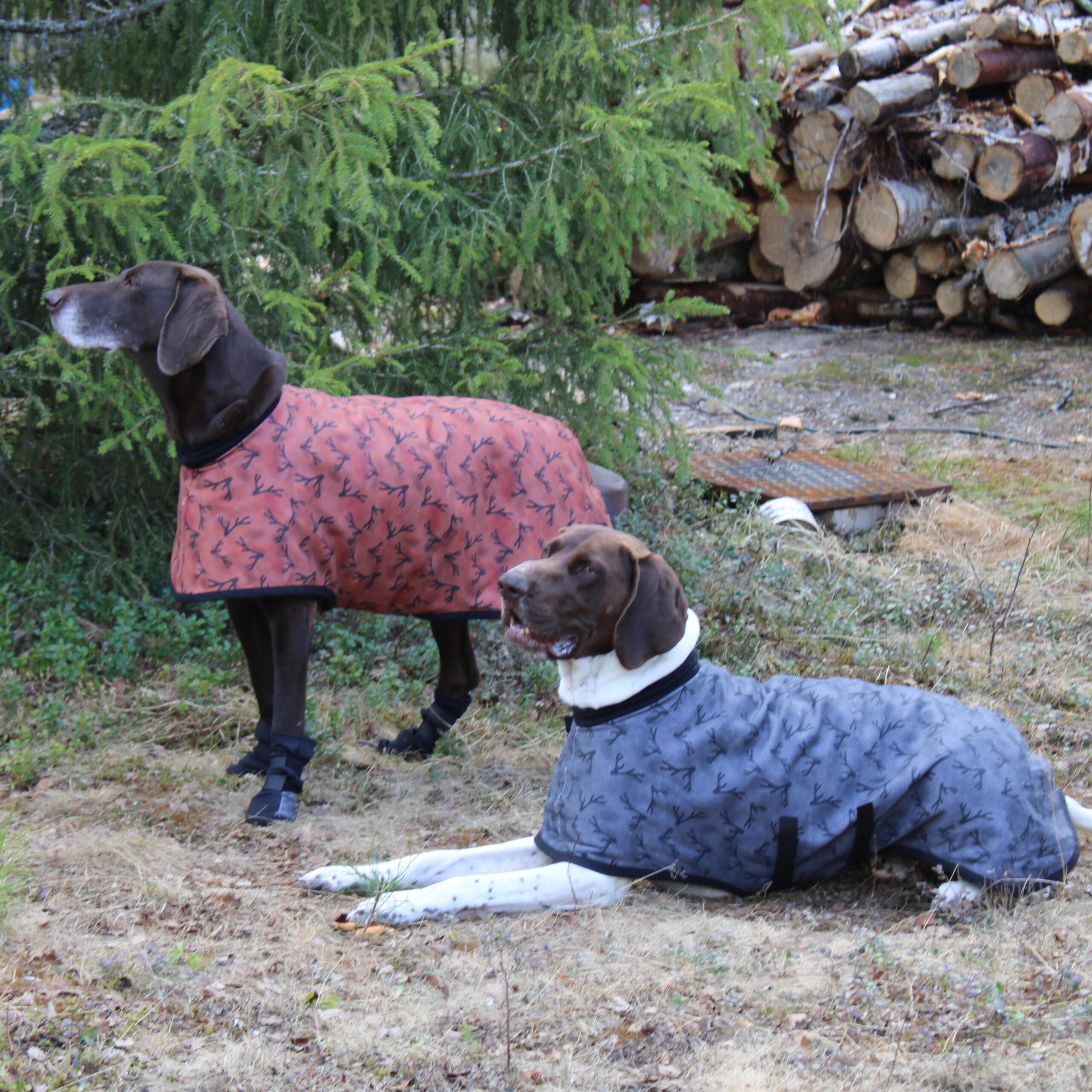 Koirien vaatteet on valmistettu omasuunnittelemistani kuoseista. Materiaalina puuvilla, fleece ja joustava ulkoilukangas. Tuotteet ovat kestäviä ja helppohoitoisia.