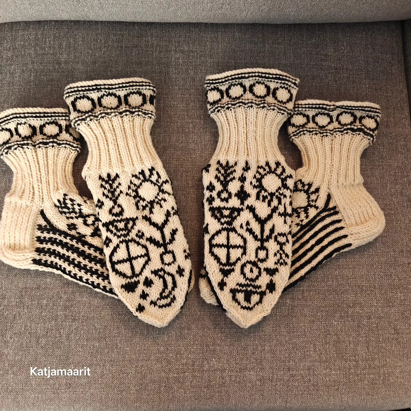 Noitarumpu sukat luovat lapin lumoa ja taikaa lämmittäessä jalkojasi. Sukkien varren pituutta on helppo muuttaa joustinneuleen pituudella. Kuviossa ei ole pitkiä langanjuoksuja. Ohjeessa neulekuviot kahteen eri kokoon. Puikkojen koolla ja langanvahvuudella voit muuttaa sukan kokoa.