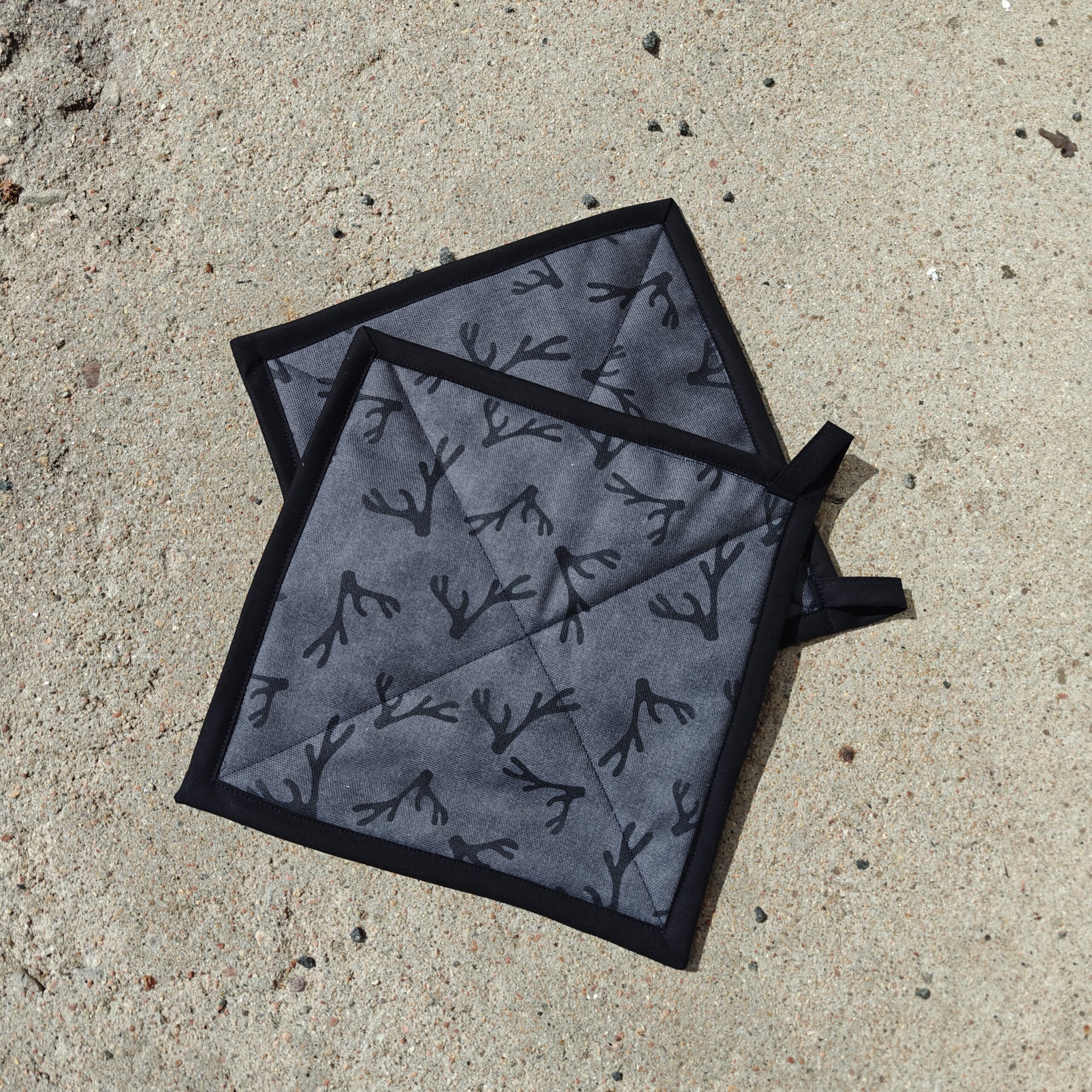 Patalaput valmistettu päällinen 100% puuvilla, välissä vanu. Kuosit ovat omasuunnittelemiani Kankaat valmistettu Euroopassa. Tuotteet suunniteltu ja valmistettu Suomessa. Pesu 40 asteessa. Kovassa kulutuksessa painojälki saattaa haalistua. Koko n. 25x25cm